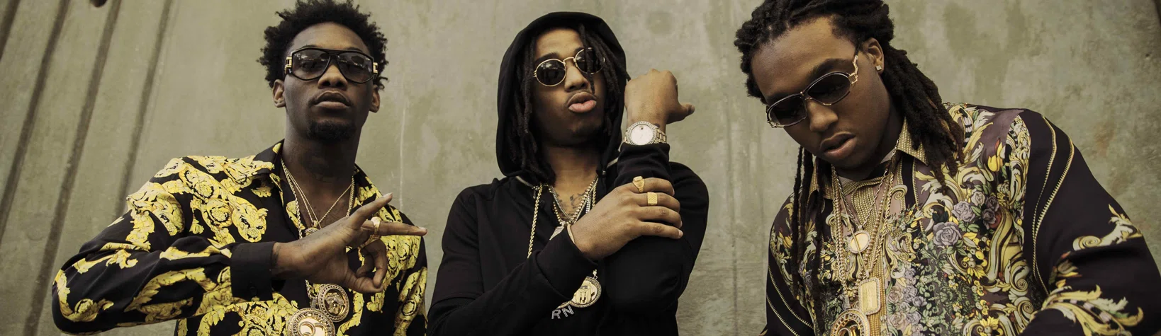Migos are an American hip-hop group from Gwinnett County, Georgia. The trio consists of Quavo (real name Quavious Marshall, age 22), Takeoff (real name Kirshnik Ball, age 19) and Offset (real name Kiari Cephus, age 22). Members Quavo and Takeoff are uncle and nephew; Offset is Quavo's cousin. They have collaborated with a number of major artists, such as Drake, R. Kelly, Gucci Mane, Young Scooter, Riff Raff, Trinidad James, ASAP Ferg, Busta Rhymes, Wiz Khalifa, Travis Scott, Chief Keef, Soulja Boy, OJ da Juiceman, Juicy J, Project Pat, French Montana, Twista and B.o.B, among others. They are managed by Coach K, the former manager of Young Jeezy and Gucci Mane, and are frequently collaborating with Bricksquad producer Zaytoven. Their single "Versace" went viral and peaked at number 99 on the Billboard Hot 100. It also inspired rapper Drake to join for the official remix. The latter performed it at the 2013 iHeartRadio Music Festival. On June 13, Migos released their mixtape Young Rich Niggas to critical acclaim. Brandon Soderberg of Spin gave it 8 out of 10 stars, commenting that it "is a super-cut of Dirty South vibes" and compared the three members to Gucci Mane, Soulja Boy and Future. On June 15, 2013, the group performed at rap radio station Hot 107.9's Birthday Bash. In October 2013, they were featured in XXL's section Show & Prove. "Versace" was placed in multiple year-end lists of 2013, including number three on XXL's The 25 Best Songs of 2013, number four on Complex's The 50 Best Songs of 2013, number five on SPIN's 50 Best Songs of 2013, number 38 on Pitchfork's The Top 100 Tracks of 2013 and number 69 on Rolling Stone's The 100 Best Songs of 2013.Young Rich Niggas was named the 27th best album of 2013 and sixth best hip-hop album of 2013 by SPIN. Book Migos for shows and concerts at Heavy Rotation booking agency. Worldwide Bookings with HR Booking. Migos Booking, Book Migos. Book artists like Migos, Migos booking agent, contact Migos email, Migos manager, Migos management for concerts, bookings, biography, pictures, videos. Migos may be available for your club shows, private party, festivals or other events.